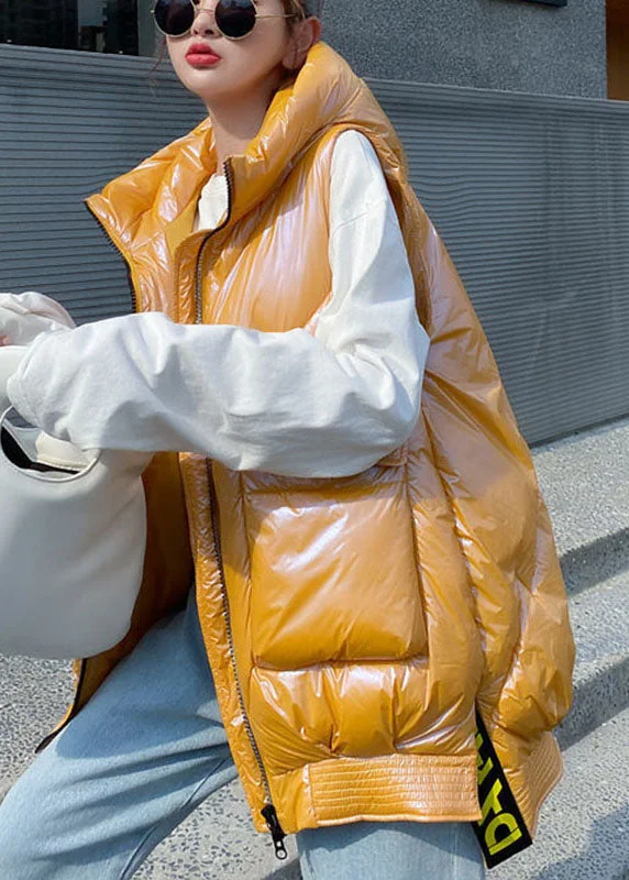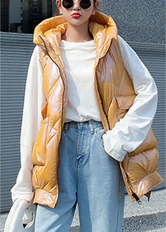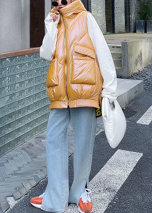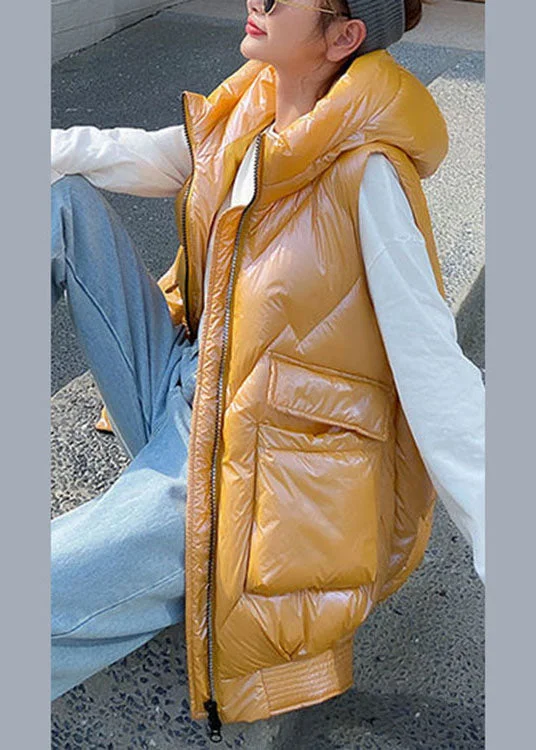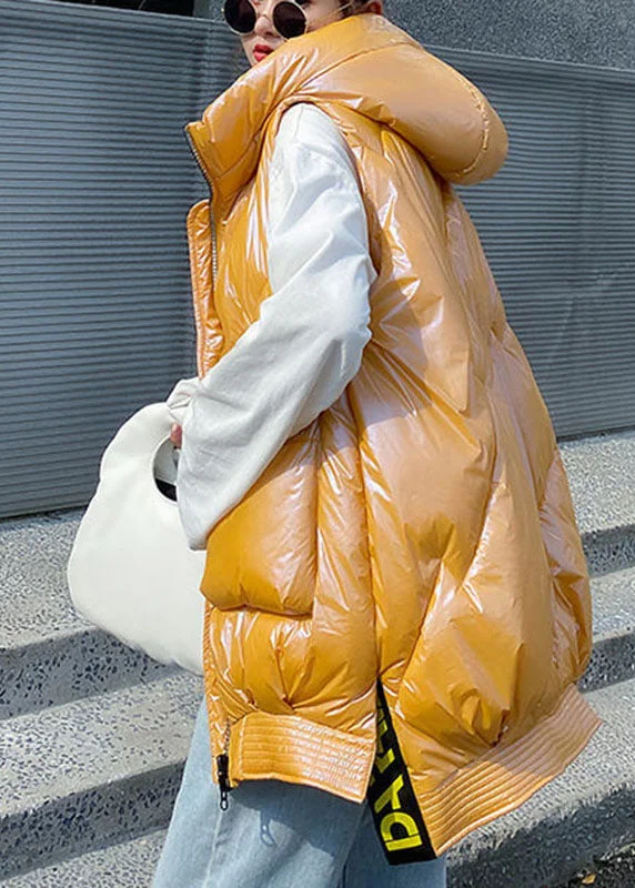 Organic Yellow hooded zippered low high design Winter Sleeveless Puffer Vest