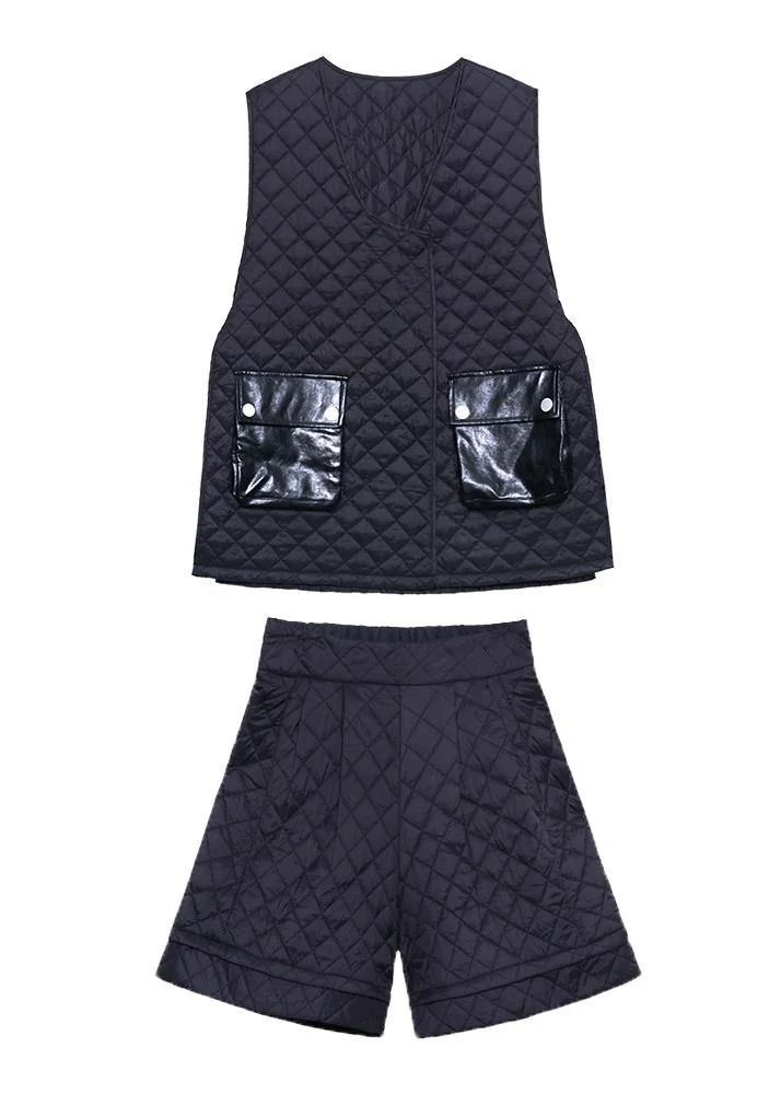 Women’s Retro western fashion cotton vest Shorts Black two piece set